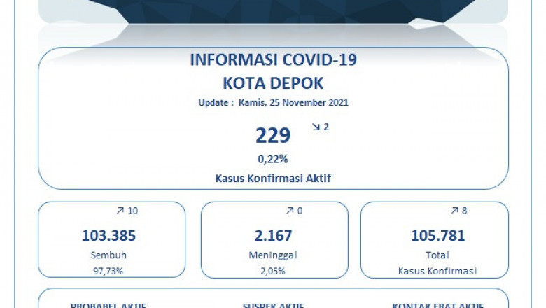Data perkembangan Covid-19 di Kota Depok per 25 November 2021. (Foto: istimewa).