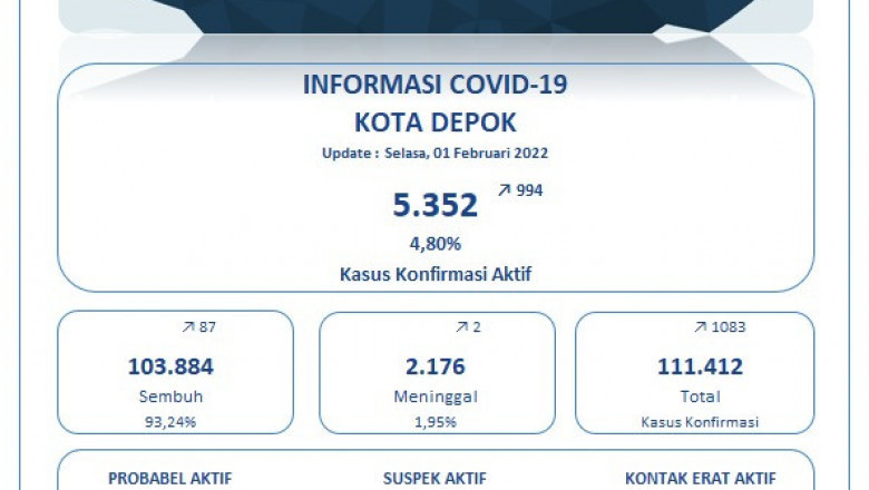 Update Covid-19 Kota Depok 1 Februari: Tambah 1.083 Kasus Konfirmasi, Sembuh 87