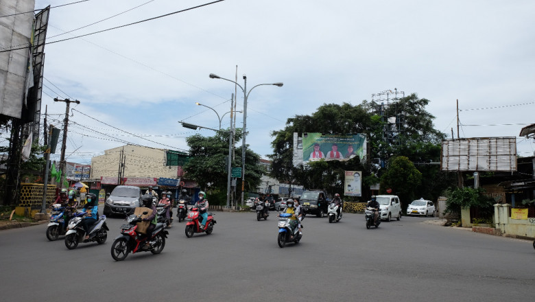 Situasi lalu lintas di Simpang Sengon, Kecamatan Pancoran Mas yang menjadi lokasi fokus pelebaran jalan oleh Pemkot Depok tahun ini. (Foto: JD 01/Diskominfo).