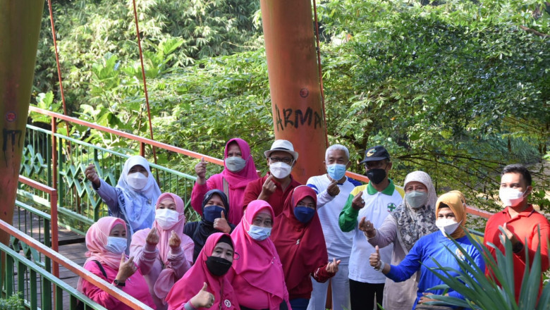 Wakil Wali Kota Depok Imam Budi Hartono (IBH) bersama Anggota Komisi C DPRD Kota Depok, Sri Utami meninjau jembatan Indiana Jones di PGS. (Foto: Istimewa)