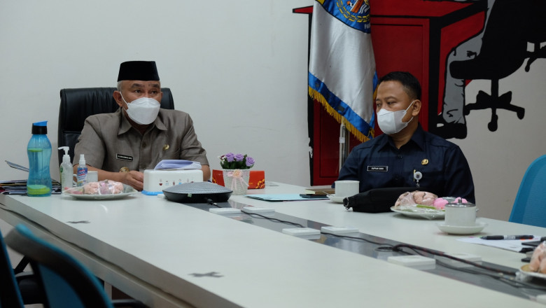 Wali Kota Depok Mohammad Idris bersama Sekretaris Daerah Supian Suri mengikuti Rapat Paripurna Dewan Perwakilan Rakyat Daerah (DPRD) Kota Depok dalam rangka Persetujuan DPRD Kota Depok terhadap Raperda APBD Tahun Anggaran 2022 secara virtual di Ruang Depok City Operation Room (DeCOR) Balai Kota Depok, Selasa (16/11/21). (JD01/EUD02)